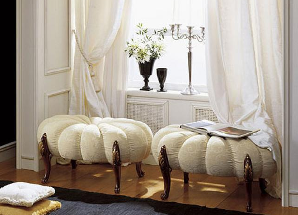 Мебельный атрибут больше напоминает необычную скамью, обработанную мягким наполнителем и покрывным материалом. Раньше эти элегантные лавочки, миниатюрные диванчики на коротких изогнутых ножках стояли во дворцах, богатых домах. Об этом говорят исторические факты и знаменитые полотна на тему эры средневековья, возрождения.