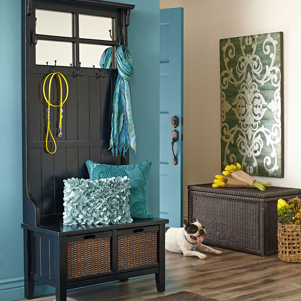 Важно правильно подобрать цвет пуфика со спинкой, чтобы он гармонировал с окружающей обстановкой в прихожей