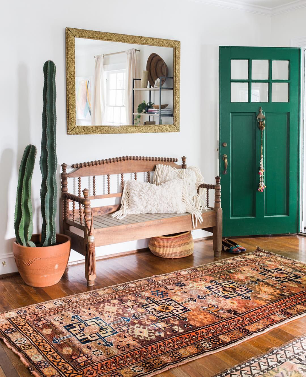 Металлическая лавка в прихожей кантри-стиля