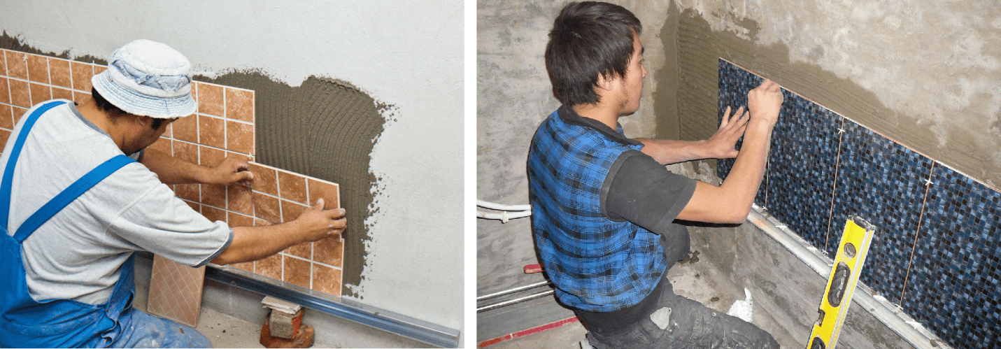 Существует два основных способа, как правильно класть плитку. В первом случае клеевой слой с помощью зубчатой гребенки наносится на стену, затем к нему прикладывается кафель.