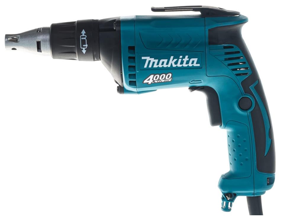 Makita TD0101F — лучший ударный сетевой шуруповерт мощностью 320 Вт, с крутящим моментом до 100 Нм. Такой момент достигается благодаря ударному механизму — вкручивание происходит не только за счет вращения, но и при помощи направленных ударов. Даже если шуруповерт не может завернуть саморез — он его заколотит. Справляется с крепежом по дереву, металлу и бетону без предварительного рассверливания.