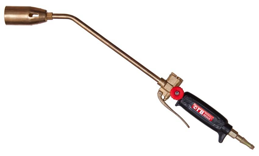 Данная модель подходит для того, чтобы обжигать старую краску, деревянные поверхности, для осуществления гидроизоляционных работ. Газ подается с помощью рычага.