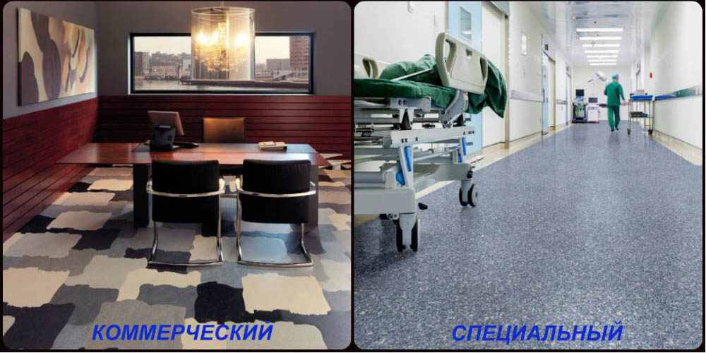 Коммерческий вид напольного покрытия подразделяется на однослойные и многослойные модели. Их выбор зависит от предназначения помещения