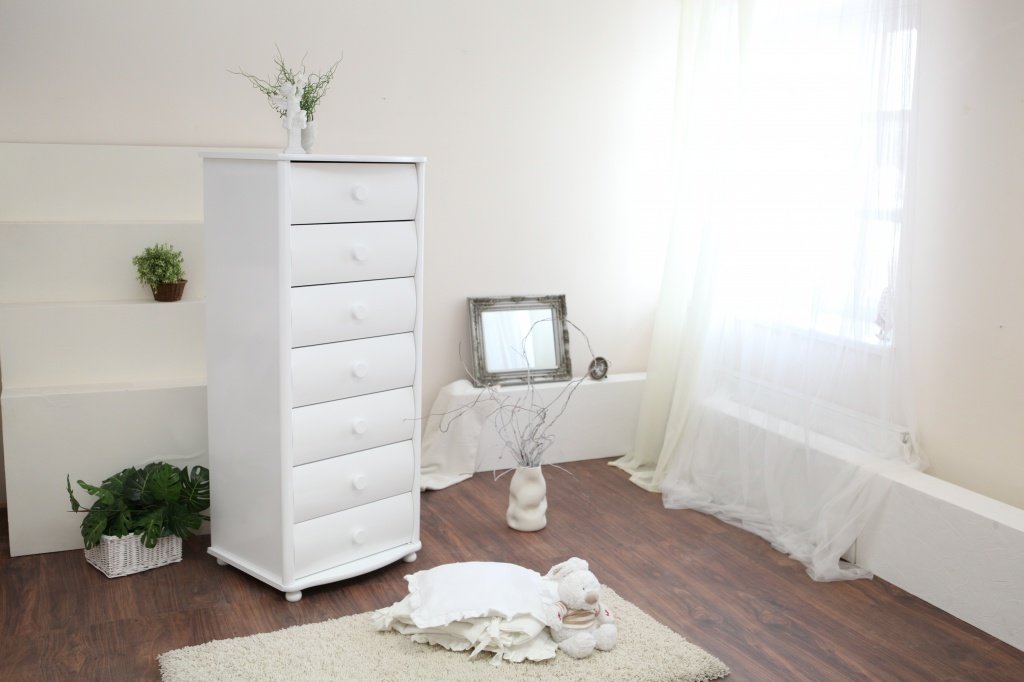 - Широкий выбор — в ассортименте мебельных магазинов есть узкие комоды, произведенные из множества материалов: от дерева до пластика. Предлагаются варианты как для взрослых, так и для детей.