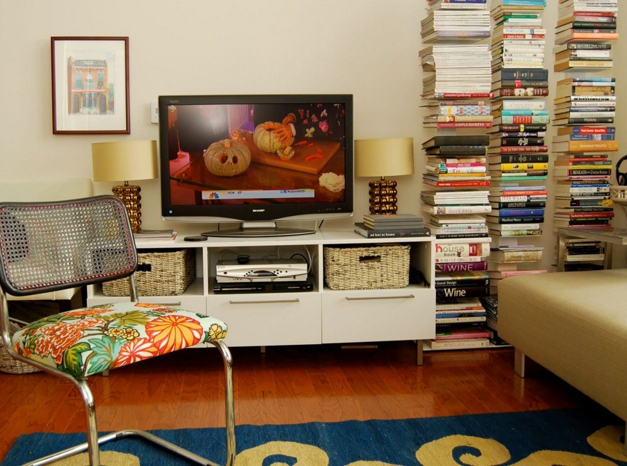 Полку «Книжная башня» или, как ее еще называют, «Книжный Тауэр» Вы наверняка уже видели присутствующей на втором плане в различных европейских и американских кинофильмах. Действительно, это – очень популярная креативная разработка помогает стильно разместить книги на ограниченном пространстве.
