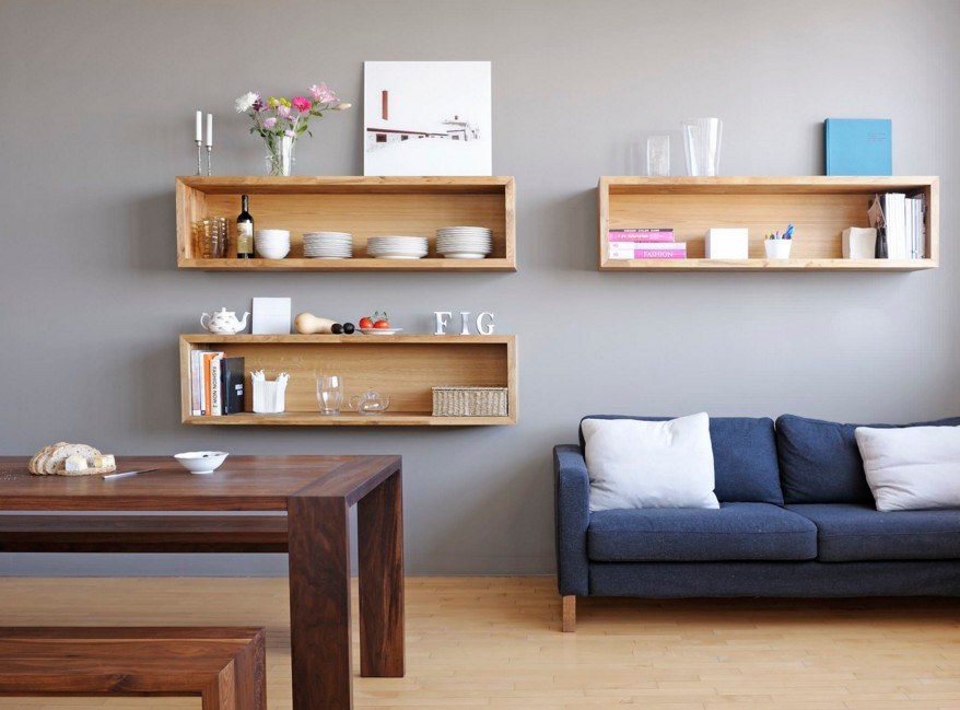 Назначение помещения предъявляет определённые требования к внешнему виду и характеристикам устанавливаемой мебели. Выбирая навесные полки на стену своего дома, стоит сразу определиться с местом её крепления. Это повлияет на геометрические параметры и стилистическое оформление изделия.