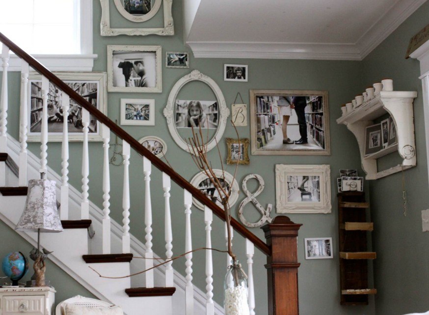 - если на полках мало места, задействуйте стеллаж, повесив картину, фото, постер или зеркало на каркасе;