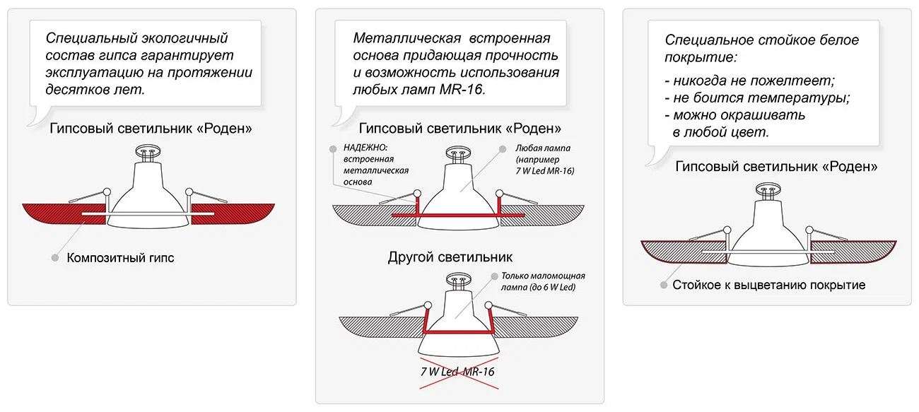 - материал плафона: гипс