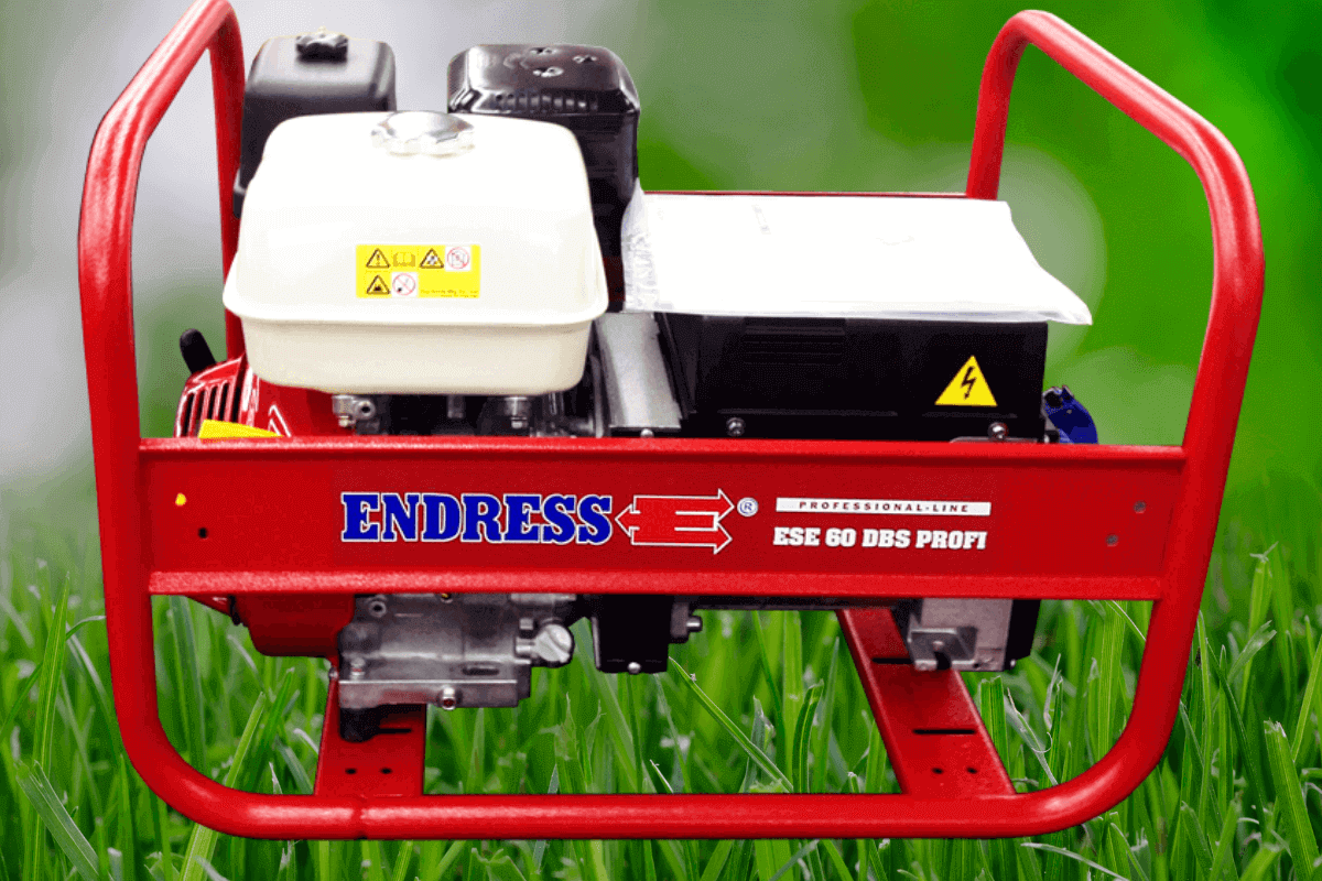 Генератор с мощным двигателем, подходящий для электроснабжения бытовой техники и электроинструментов. Подходит