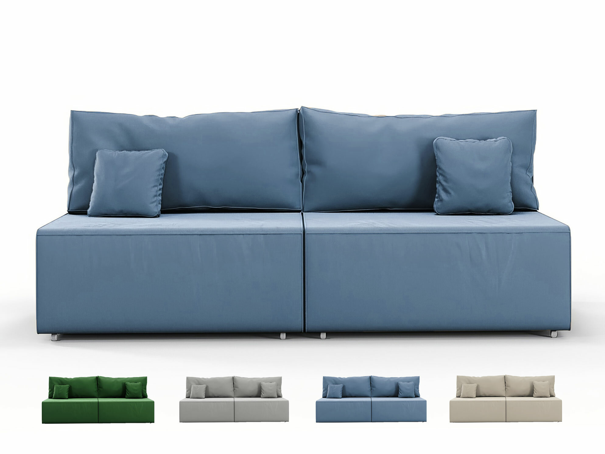 Мягкость — сама поверхность дивана выполнена из приятного для отдыха материала, так еще и в комплекте идут подушки.