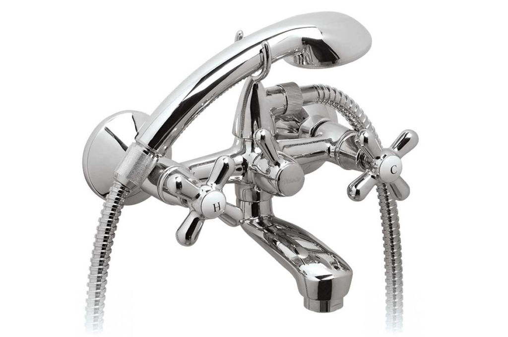 Навесные краны монтируются на стену. Они не имеют излива, а вместо него оборудуются шлангом и душевой лейкой.