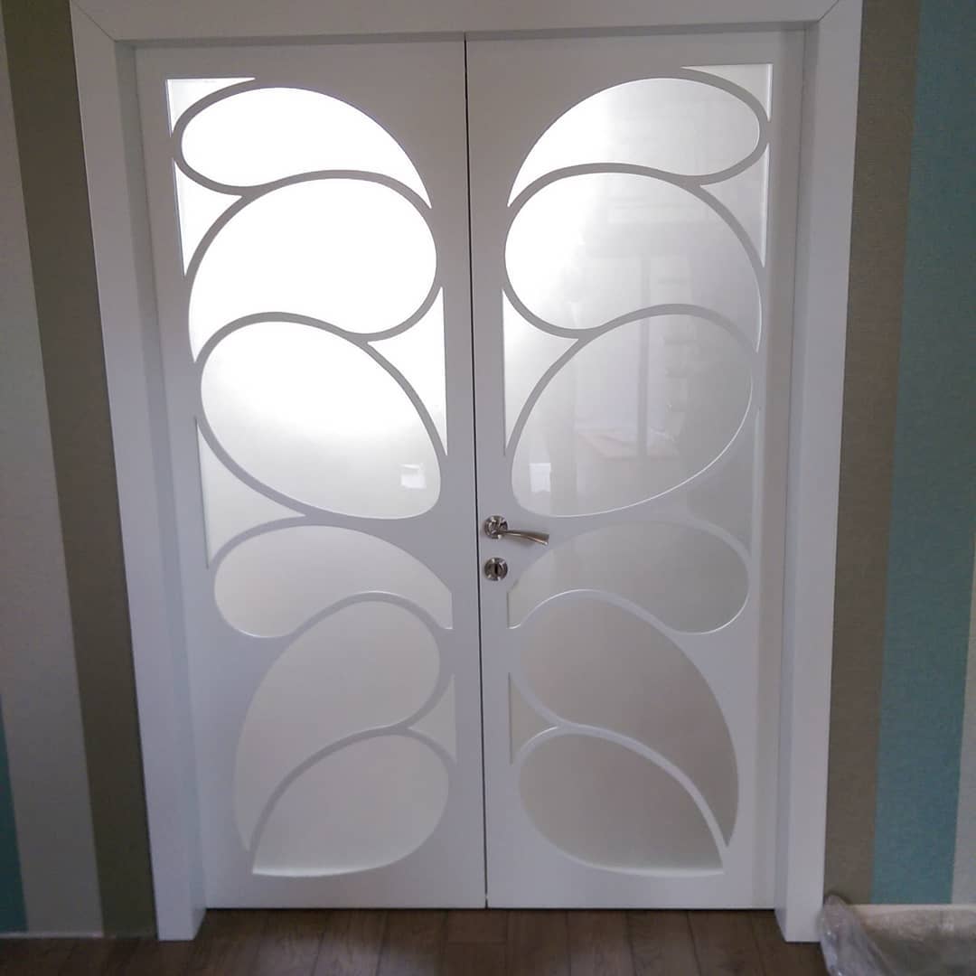 Например, оригинально смотрится дизайн дверей 2024 когда более широкая «глухая» створка сочетается со створкой, украшенной стеклянной вставкой.