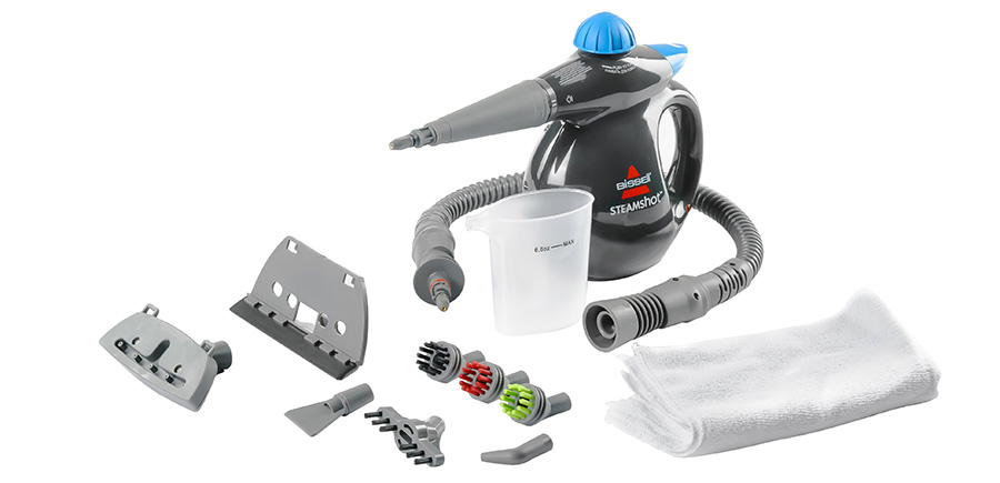 Наиболее практичными и удобными устройствами, позволяющими быстро и эффективно справиться с загрязнениями любого происхождения, являются компактные ручные паровые очистители Bissell. В их число входит модель 16Q1-J Steam Shot, вес которой составляет чуть более 2 кг. Такое устройство незаменимо для очистки стекол, зеркал, одежды, гардин, поверхности труднодоступных мест. Для этих целей модель имеет в своем комплекте круглые щетки, насадки для чистки швов, в углах и для отпаривания одежды. Универсальное устройство не предназначено для масштабных уборок, время ее непрерывной работы составляет 10 минут. Модель незаменима для уборки поверхностей небольшой площади, не требующей много времени.