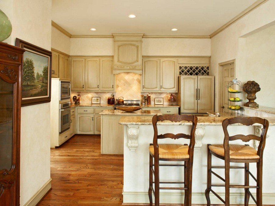 - Крупные рисунки на потолке уместны в больших кухнях, в маленьких лучше отказаться от такого оформления.