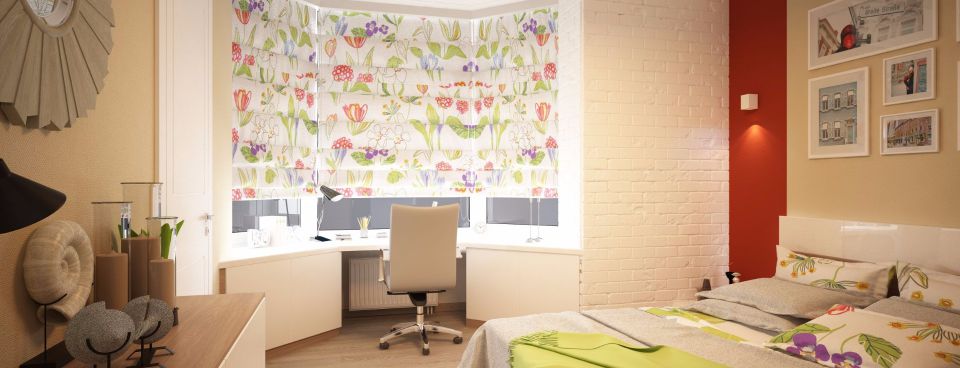 Площадь эркерного окна была использована в счёт полноценного кабинета.