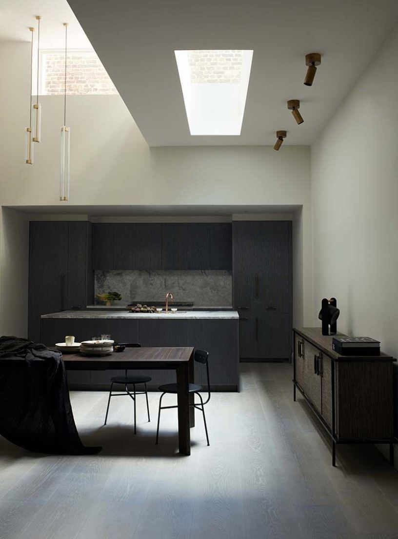 В зоне кухни важно не только окружающее освещение, но и подсветка рабочих поверхностей и столовой группы. Для этих целей подойдут плафоны, бра, встроенные светильники