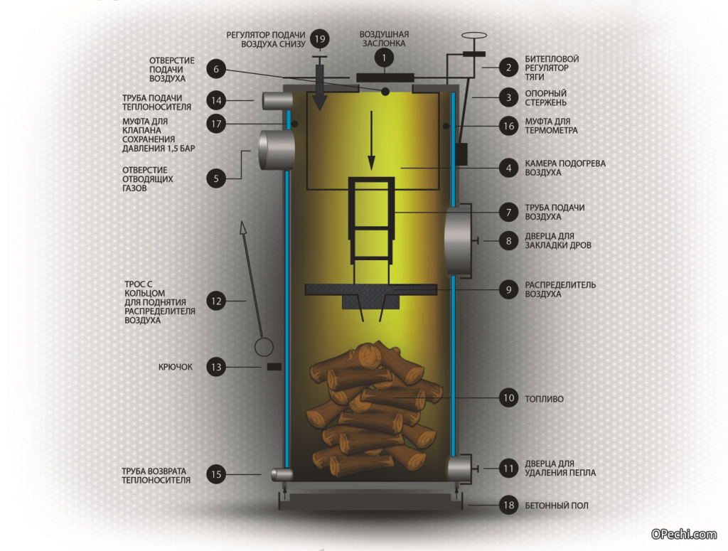 Очистка от нагара необходима после каждого прогорания топлива. Осуществляется через специальный люк, расположенный внизу котла.