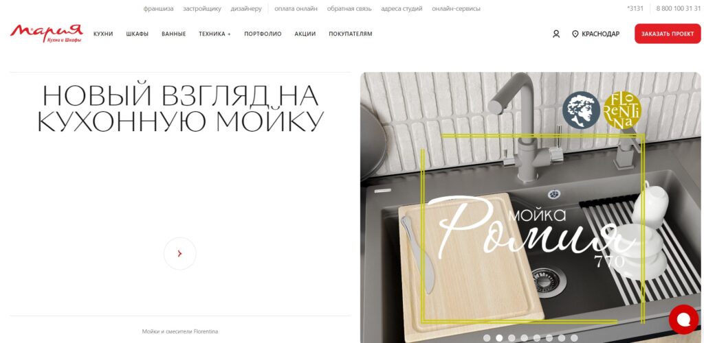 Компания “Мария” является бесспорным лидером в индустрии кухонной мебели. Об этом говорит как широкий ассортимент продукции, так и другие дополнительные возможности для клиентов. “Мария” имеет большой опыт создания кухонь и их продажи, компания на рынке уже целых 23 года. В числе клиентов можно встретить звезд российского бизнеса и других представителей важных сфер деятельности. Так, на главной странице официального сайта размещены фотографии и описание проекта для Ксении Собчак, Анны Хилькевич, семьи Соболевых и других. Кроме того, отличительная черта в каталоге Марии в отличие от других производителей — наличие встраиваемой мебели, что является абсолютным трендом на данный момент. Стоит также упомянуть о бесплатном выезде дизайнера и бесплатных замерах, производимых опытными специалистами, так что за размеры и дизайн интерьера можно не переживать!