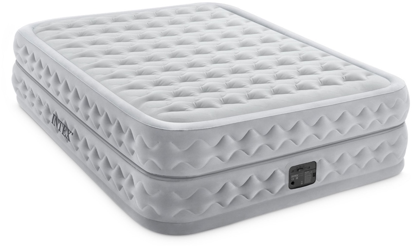 Модель компании Intex — односпальный надувной матрас с подголовником. В конструкции данной модели предусмотрен встроенный насос, способный надувать спальное место за несколько минут и спускать воздух также быстро. Такое оснащение напорядок повышает удобство пользования матрасом. В комплект поставки входит сумка, чтобы компактно хранить и переносить надувную кровать.