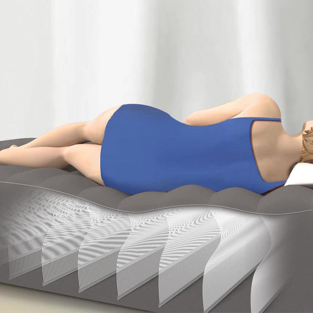 - Покрытие Luxurious Pillow Top образовано мелкими воздушными ячейками, позволяющими воздуху свободно циркулировать. Благодаря такому слою поверхность надувной мебели принимает формы тела человека, обеспечивая особенно приятный отдых.