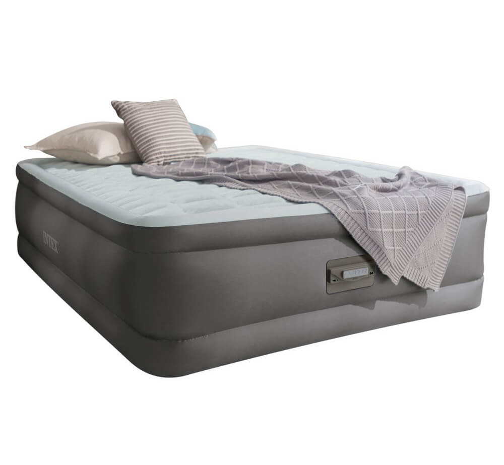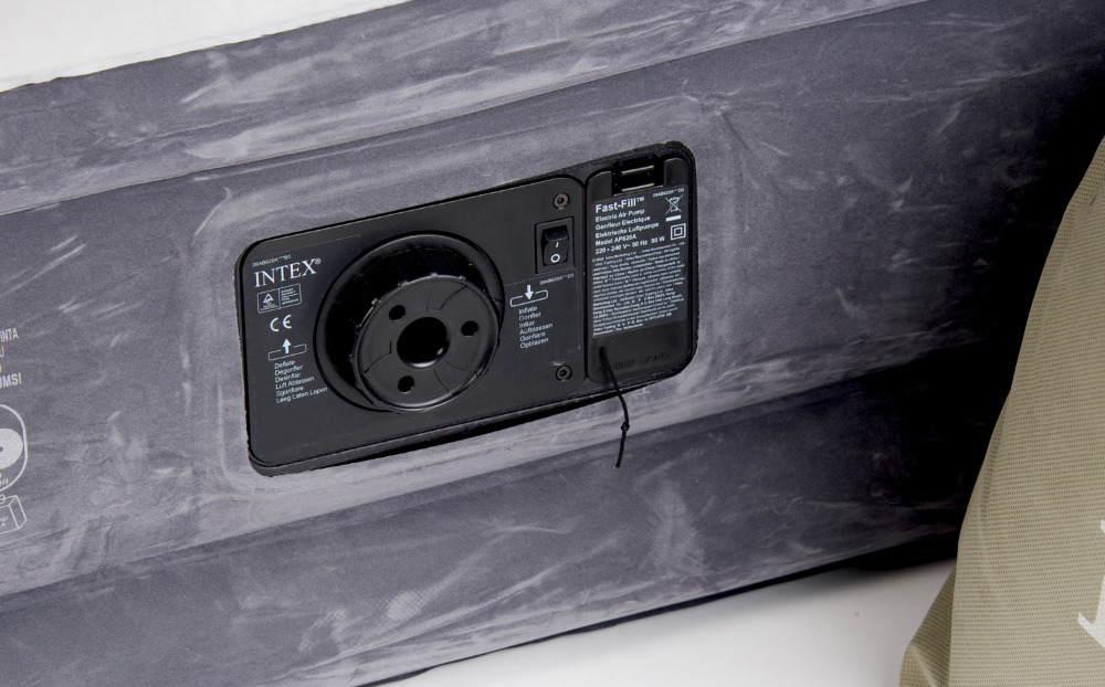 - Если предполагается использовать кровать только дома (в квартире, доме), то можно выбирать надувные кровати Intex со встроенными насосами, работающим от электрической сети. Такие модели легко быстро надуть и сдуть, потребуется буквально несколько минут. Благодаря небольшим размерам, кровать в сдутом виде не требует специальных мест хранения;