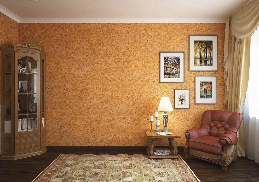Жидкие обои на пробковой основе — универсальный материал, который подходит для декорирования криволинейных или просто криволинейных стен. Такие обои содержат измельченную кору дуба и вещества на основе акрила.