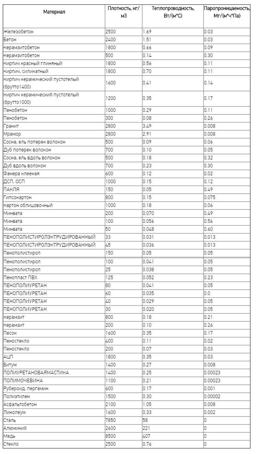 Низкая теплопроводность, обеспечивающая помещению медленное остывание зимой, и долгое нагревание летом. Это позволяет экономить на отоплении или охлаждении помещения. Выбирая материал, необходимо сравнивать коэффициенты теплопроводности, при этом учитывая условия в каких будет применяться данный материал.