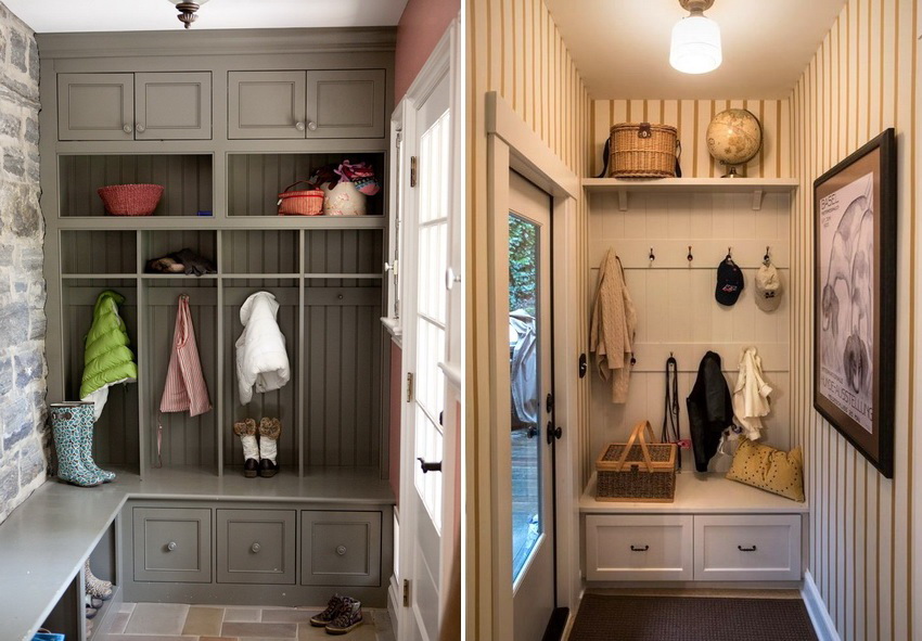 В таком пространстве вмещаются лишь крючки, на которых хранится одежда, и полка для обуви.