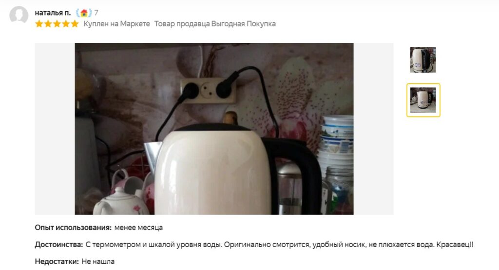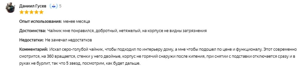Покупателям нравится, что вода не брызгается куда попало — у чайника лучший широкий носик