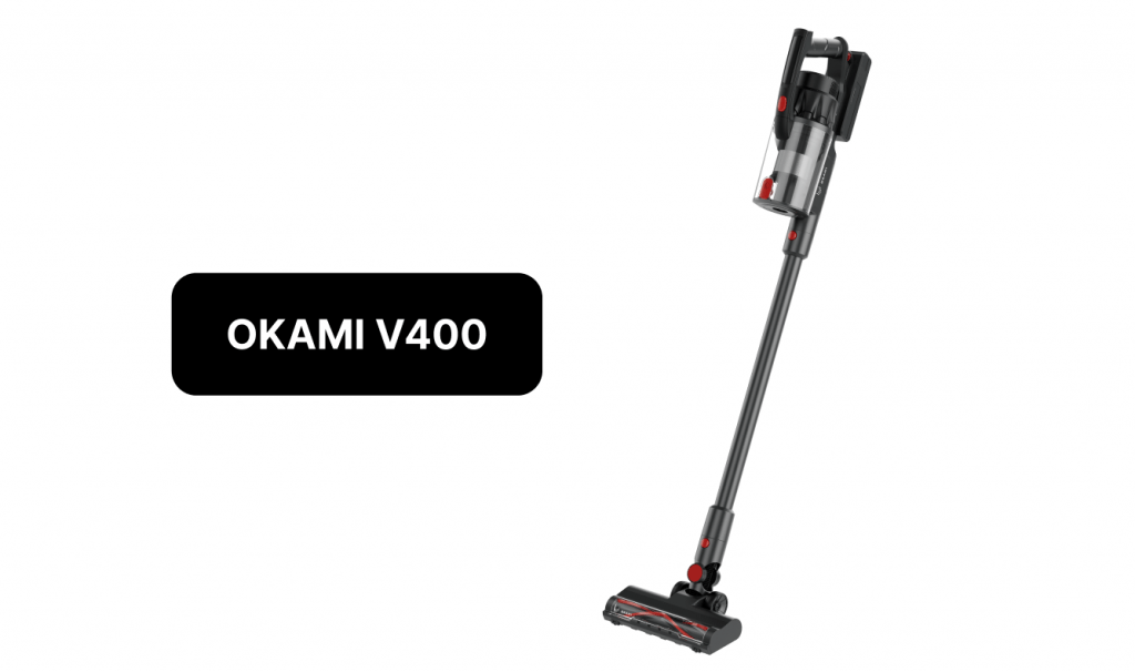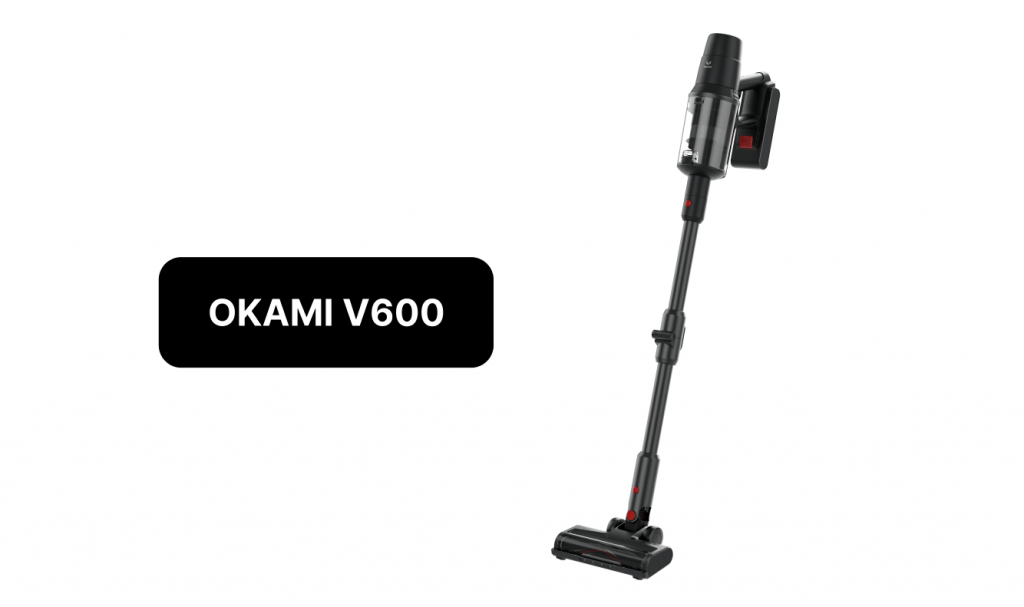 Okami V300 можно купить дешевле остальных моделей, так как характеристики у пылесоса не такие высокие, как у V400 и V600. Однако в бюджетном сегменте V300 выгодно отличается от остальных пылесосов. На одном заряде пылесос работает 60 минут, в режиме турбо продержится до 15 минут. Устройство всасывает мусор с мощностью 23 000 Па, турбощетка с LED-подсветкой и валиком V-образной формы тщательнее захватывает мусор и мелкую пыль.