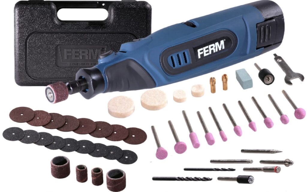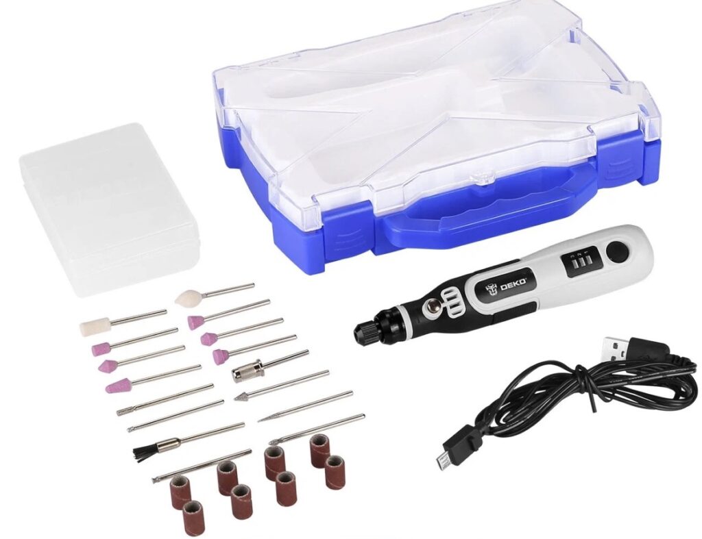 Эта мини-дрель предназначена для проведения гравировщиками декоративных работ по совершенно разным материалам – металлу, пластику, дереву. Она многофункциональна, поскольку к ней можно подключать разнообразные насадки из комплекта – для сверления, порезки, шлифовки. Удобно, что в наборе есть кейс из пластика для хранения и переноски прибора и его комплектующих. Устройство может сверлить как сквозные отверстия, так и выемки, что делает его универсальным.