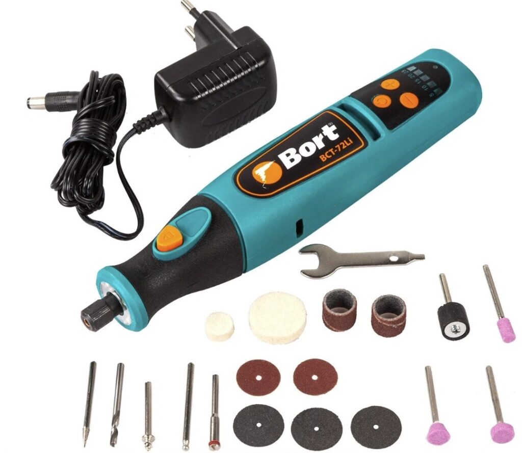 Дешевый инструмент, который пользуется значительным спросом на рынке товаров. Установленный аккумулятор имеет напряжение в 3.6 В. Максимальное количество допустимых оборотов в минуту равняется 15000. Гравер полностью заряжается за три часа. Аппарат достаточно легкий и весит всего 300 грамм.