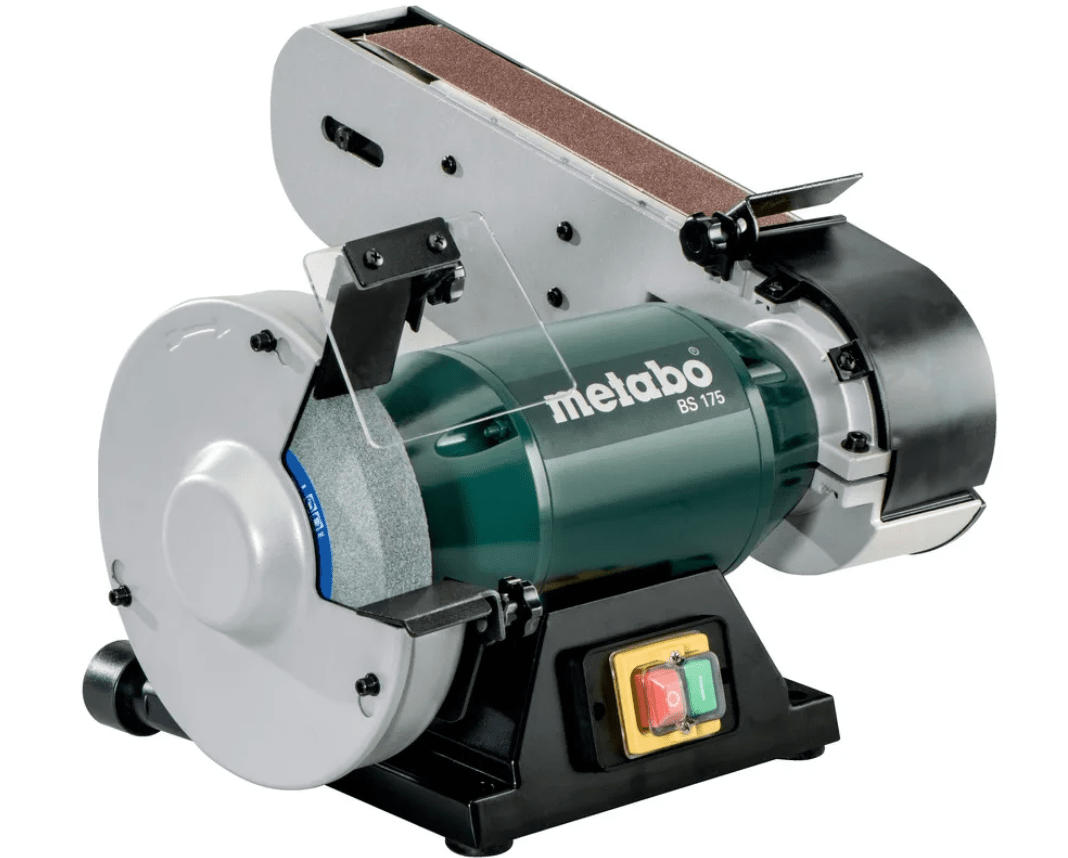 Профессиональный станок Metabo BS 175 предназначен для обработки дерева и металла. С его помощью удастся заточить кухонный и садовый инвентарь, инструменты, отшлифовать заготовки, удалить ржавчину с поверхностей. Для этого служат два различных модуля: точильный диск из корунда и тканевая шлифовальная лента.