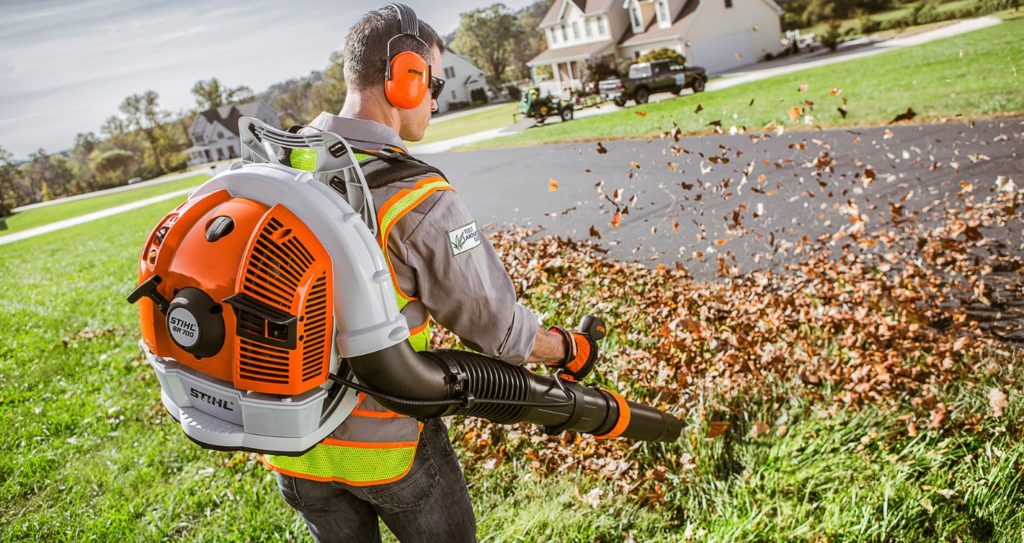 - Выбирайте воздуходувку, работающую от аккумулятора, поскольку они обычно тише газовых.