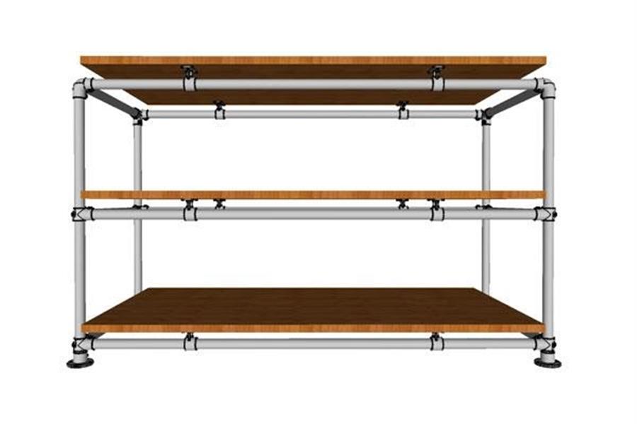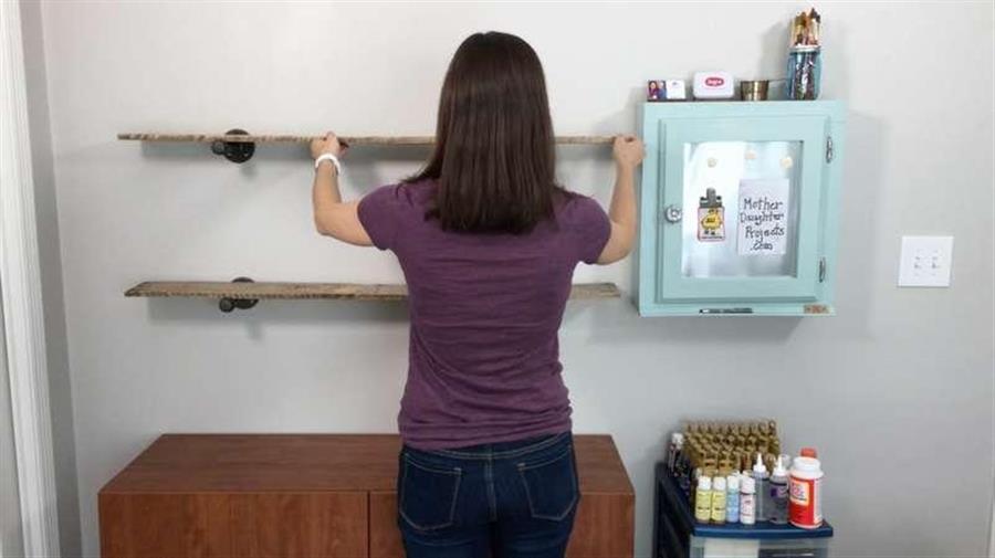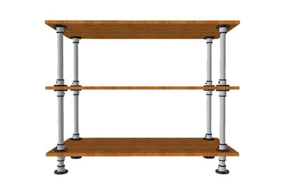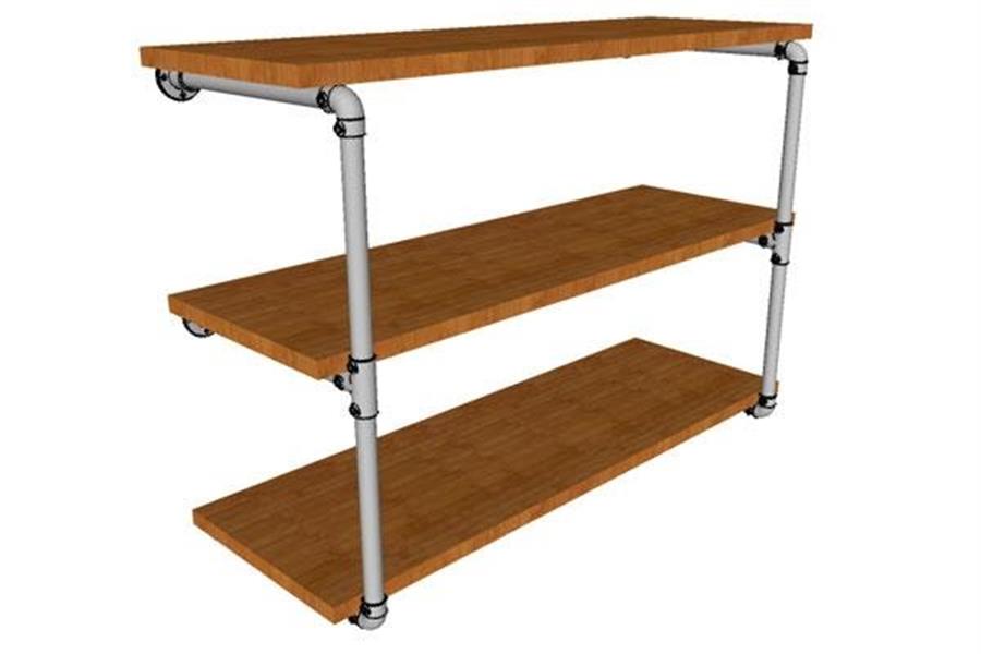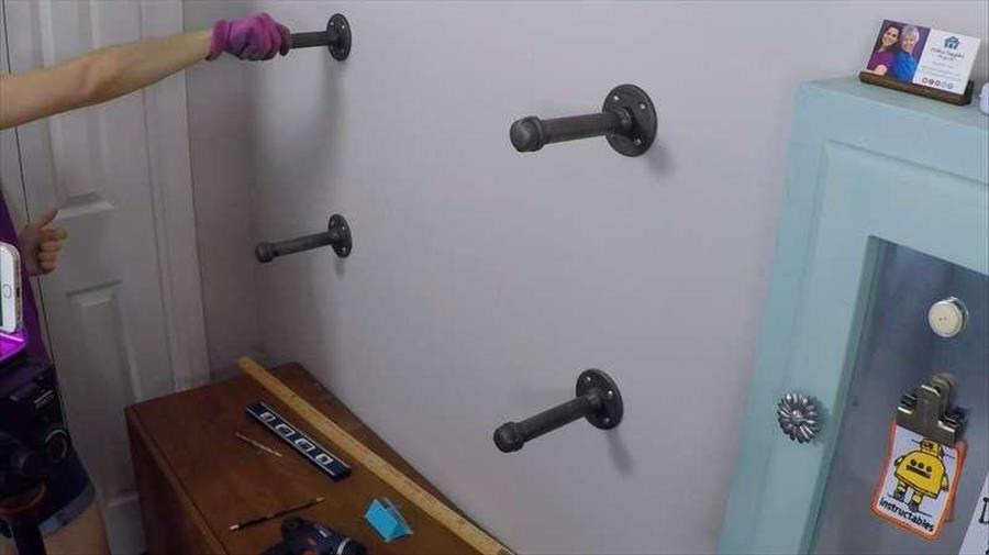 Попробуем собрать еще одну простую конструкцию из труб и деревянных полок. Её отличие в том, что крепится она к стене, а это значит что установить такой стеллаж можно в любом месте.