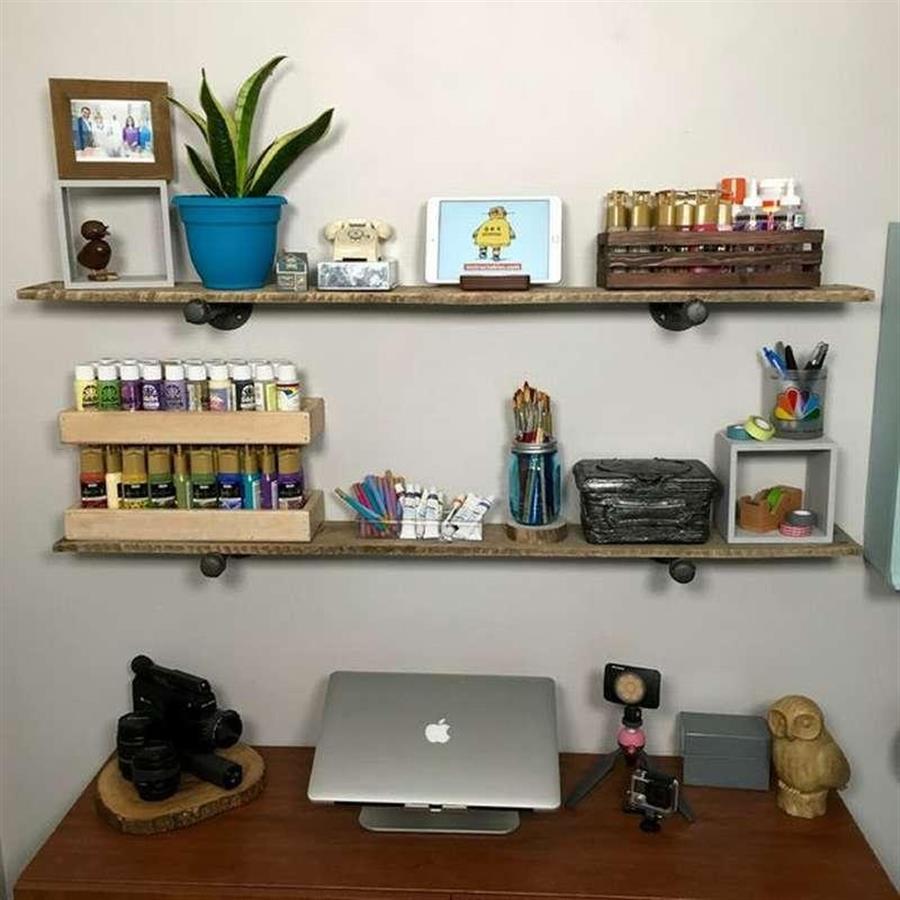 4. Расставьте полки на разных уровнях. Не следуйте привычному горизонтальному или вертикальному расположению полок, а создайте композицию из полок, расставленных на разных уровнях, чтобы добавить объем и интересный визуальный эффект.
