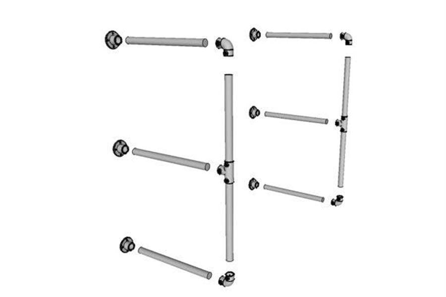 Нам понадобятся заранее обрезанные металлические трубы, фитинги, тройники и фланцы, а также угловые колена