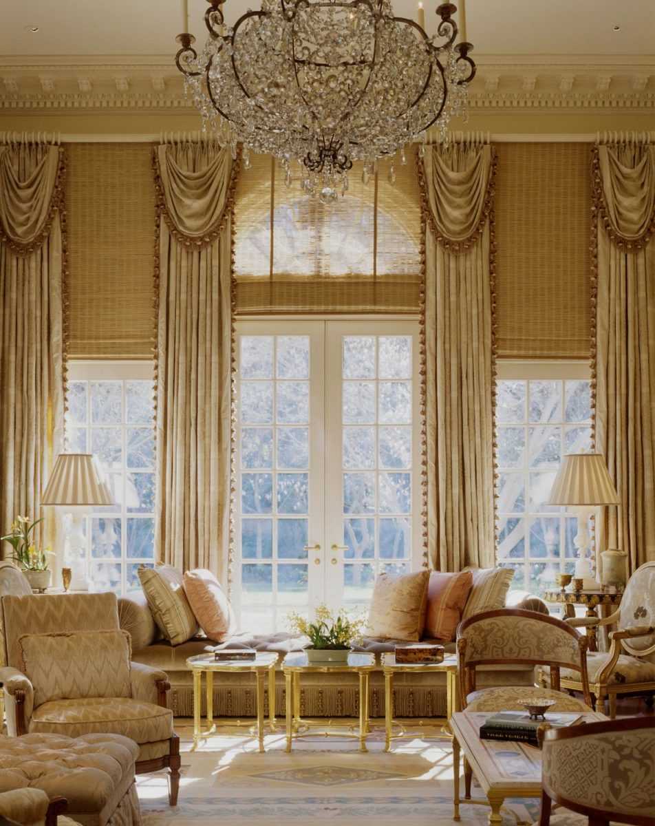 Красота, достойность, элегантность – это всё о них. В традиционном интерьере рекомендуется оформление окна портьерами, гардинами и ламбрекеном. Шторы собирают по бокам и фиксируют подхватами.