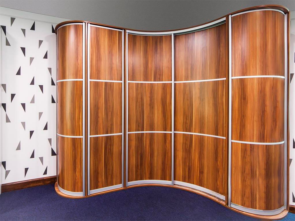 - Радиусные – это оригинальные дизайнерские модели, которые изготавливают на заказ. Такими шкафами из натурального дерева можно украсить любой интерьер. Они могут устанавливаться в ниши и повторять изгибы стен.