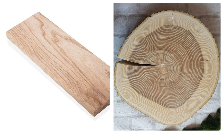Ясень — твердое и прочное дерево, не чувствительное к влажности или чрезмерной сухости. Обладает плавными текстурными полосами и нежным оттенком.