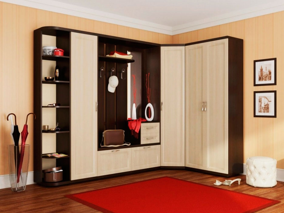 - обустройство углов. Как правило, углы в прихожей ничем не заняты. А значит, можно оптимально обыграть это пространство, разместив там угловой шкаф. Он отличается повышенной вместимостью и функциональностью.