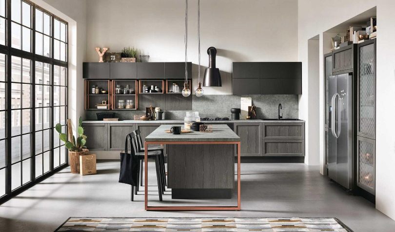 В сочетании со стульями из пластика или хромированной стали такая мебель станет основой кухни в стиле хай-тек, лофт или минимализм.