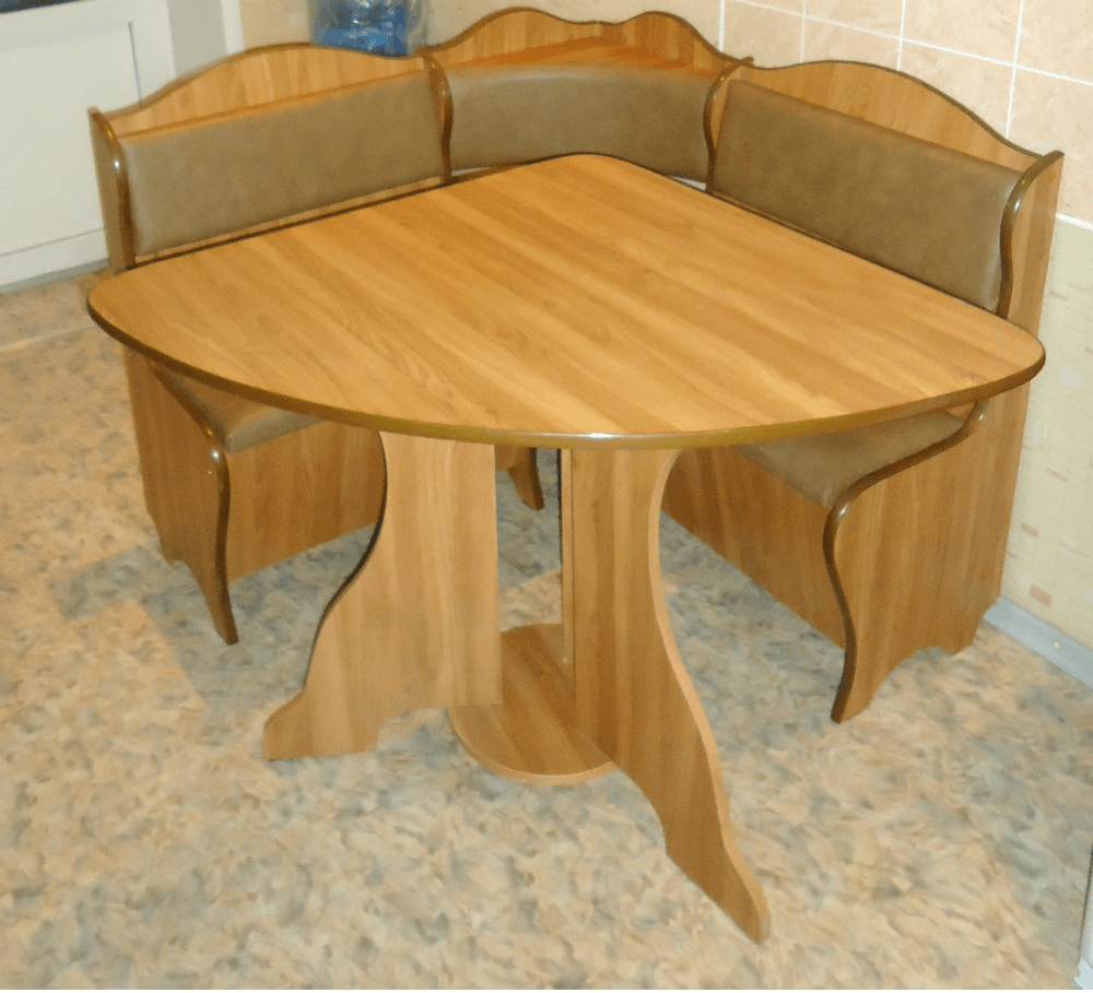 Хороши для крохотных кухонь, где объект стоит в углу или возле стены. Однако сесть за него могут только две или три персоны. Если поставить стол в центр, то усядутся 4 человека. При этом увеличивать площадь поверхности смысла нет, иначе образуется солидный участок в центре, к которому неудобно тянуться.