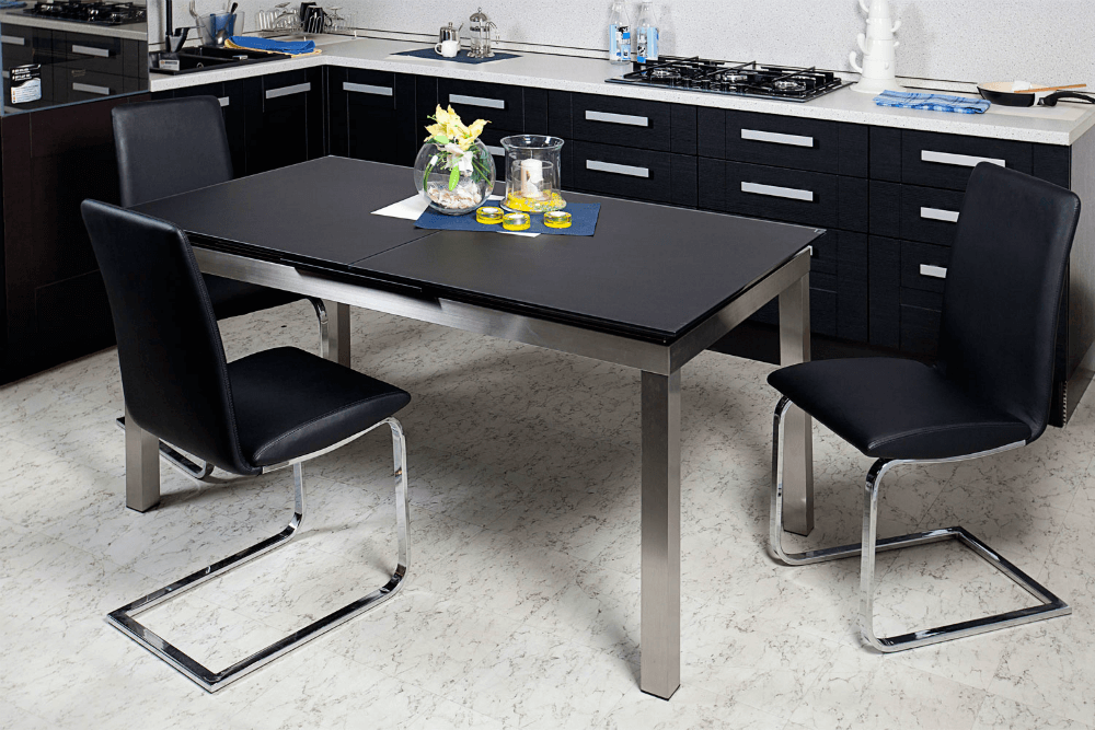 Черный стол — универсальная модель, которая может вписаться почти в любой интерьер.