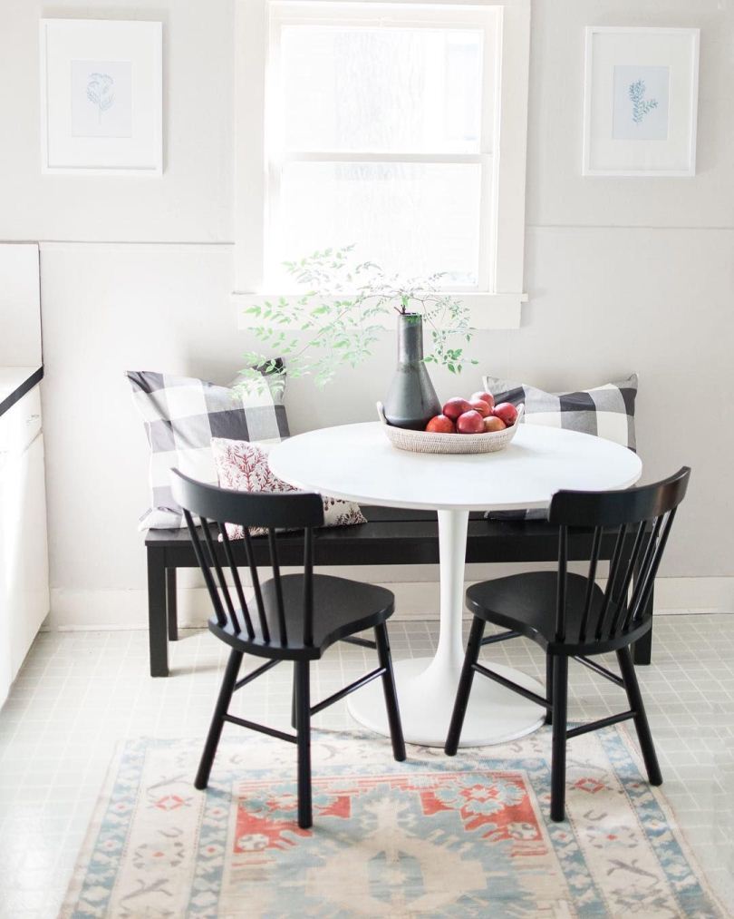 Круглая. Она позволяет втиснуться большему количеству людей, что особенно удобно для вечеров в кругу друзей за кофе или игр в “Мафию”. Но не подходит для маленьких кухонь, так как забирает много свободного пространства и оставляет свободными углы.