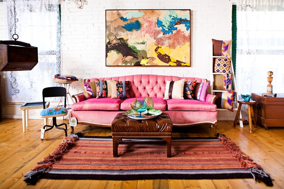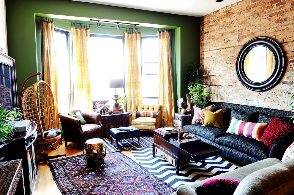 Гостиная в стиле бохо, с использованием эклектики.
