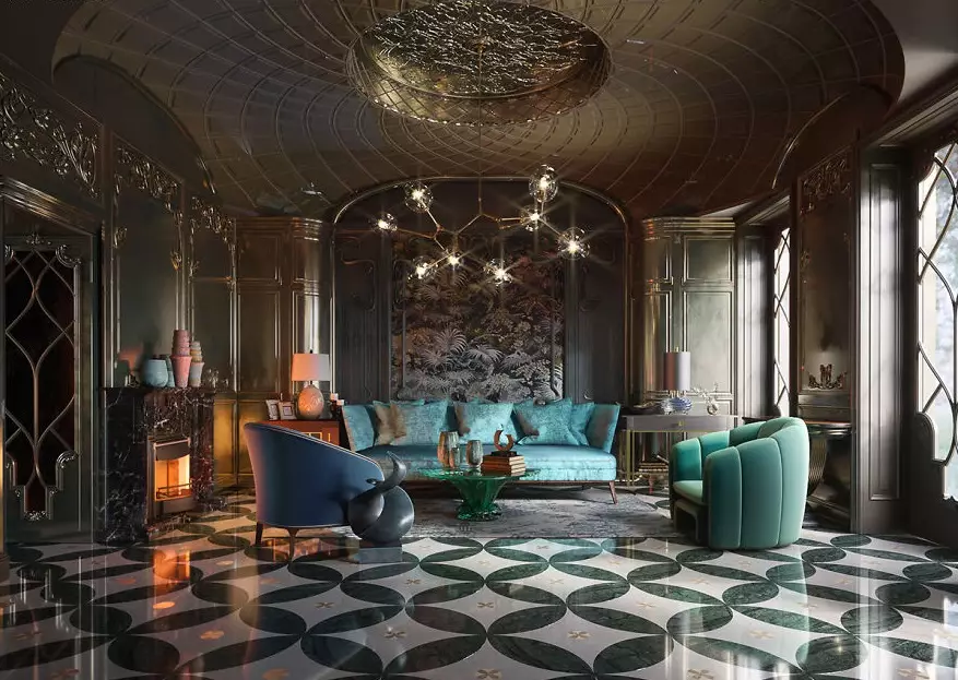 Декоративное оформление потолка — обязательная черта стиля модерн в его классическом варианте
