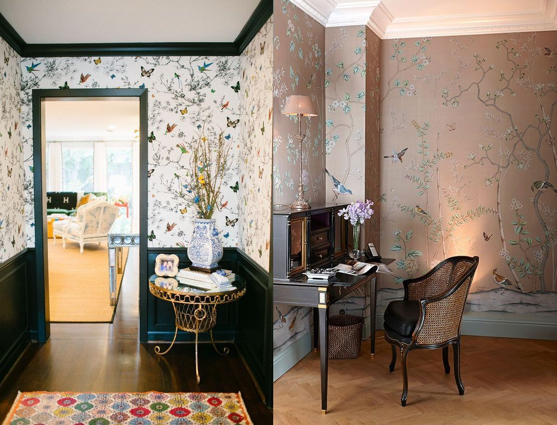 Так пару лет назад в моду снова вошли обои и ткани в стиле шинуазри, а в этом году уже завоевали популярность обои с реалистичным изображением лепнины.