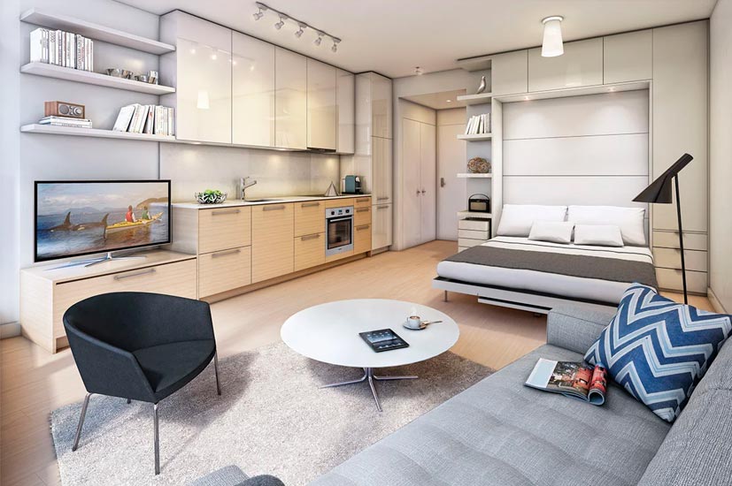 Совет — выбирая конкретный вариант, обязательно попытайтесь представить, как будете расставлять мебель и бытовую технику. Учтите, что придется расстаться с привычными вещами, заменив их трансфомерами. Вам придется: