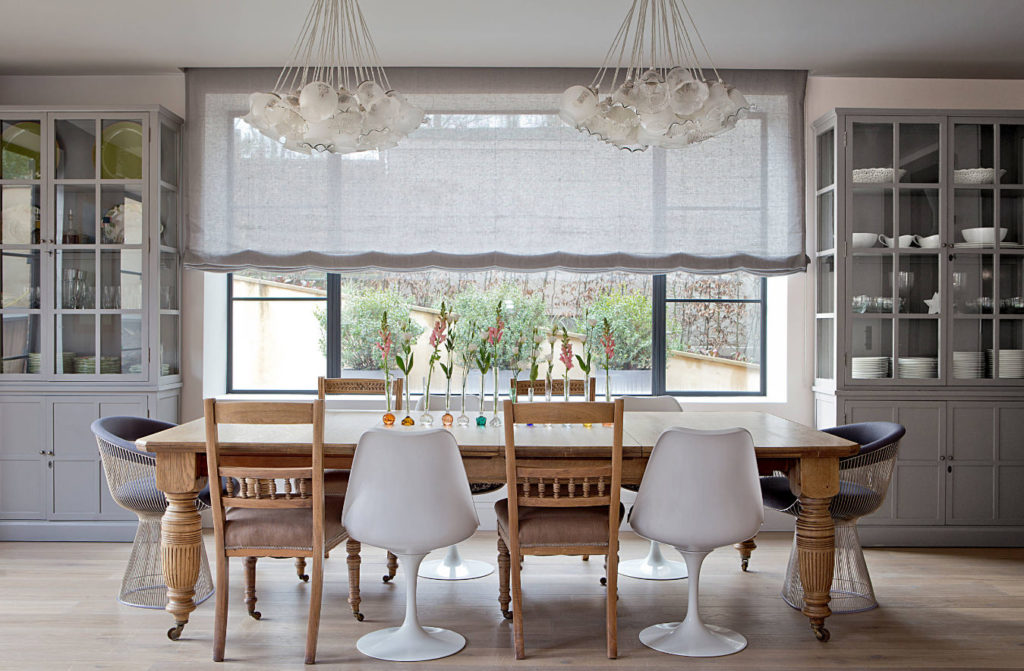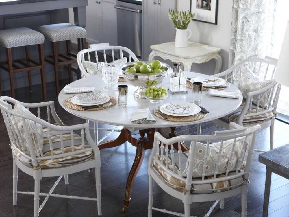 В зависимости от стиля кухонного интерьера подбираются стол и стулья, можно купить готовый набор. Например, скандинавский стиль предлагает дополнить кухонный гарнитур деревянными стульями, они могут быть самого простого дизайна, с подлокотниками. Хай-тек предпочитает металл, необычный дизайн, а классика требует такого же стиля стола и стульев, которые могут быть заменены креслами.